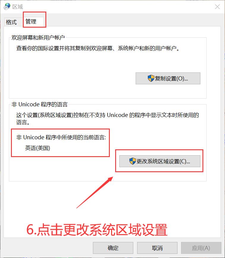 第六步.点击管理,点击更改系统区域设置