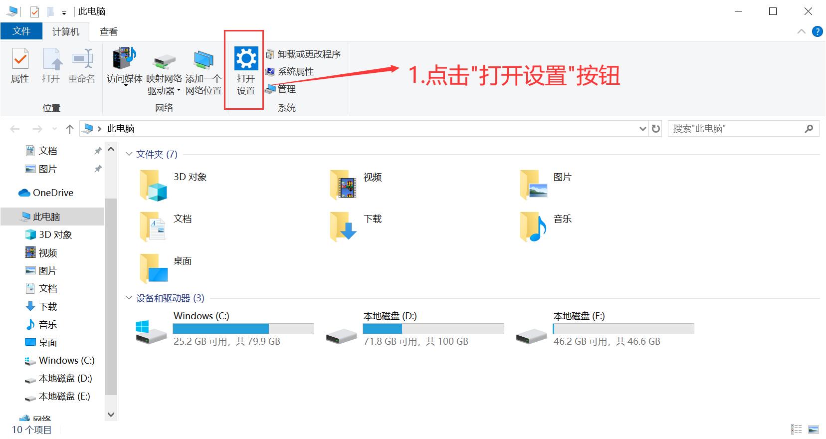 第一步.打开我的电脑,并且点击打开设置按钮