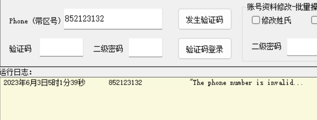 代理配置正常后在这里随便输个号码测试下联网,(查看运行日志如下图)这种没有报网络错误证明就有网,就可以导入协议号了!!!!!!!!!!!!!!!