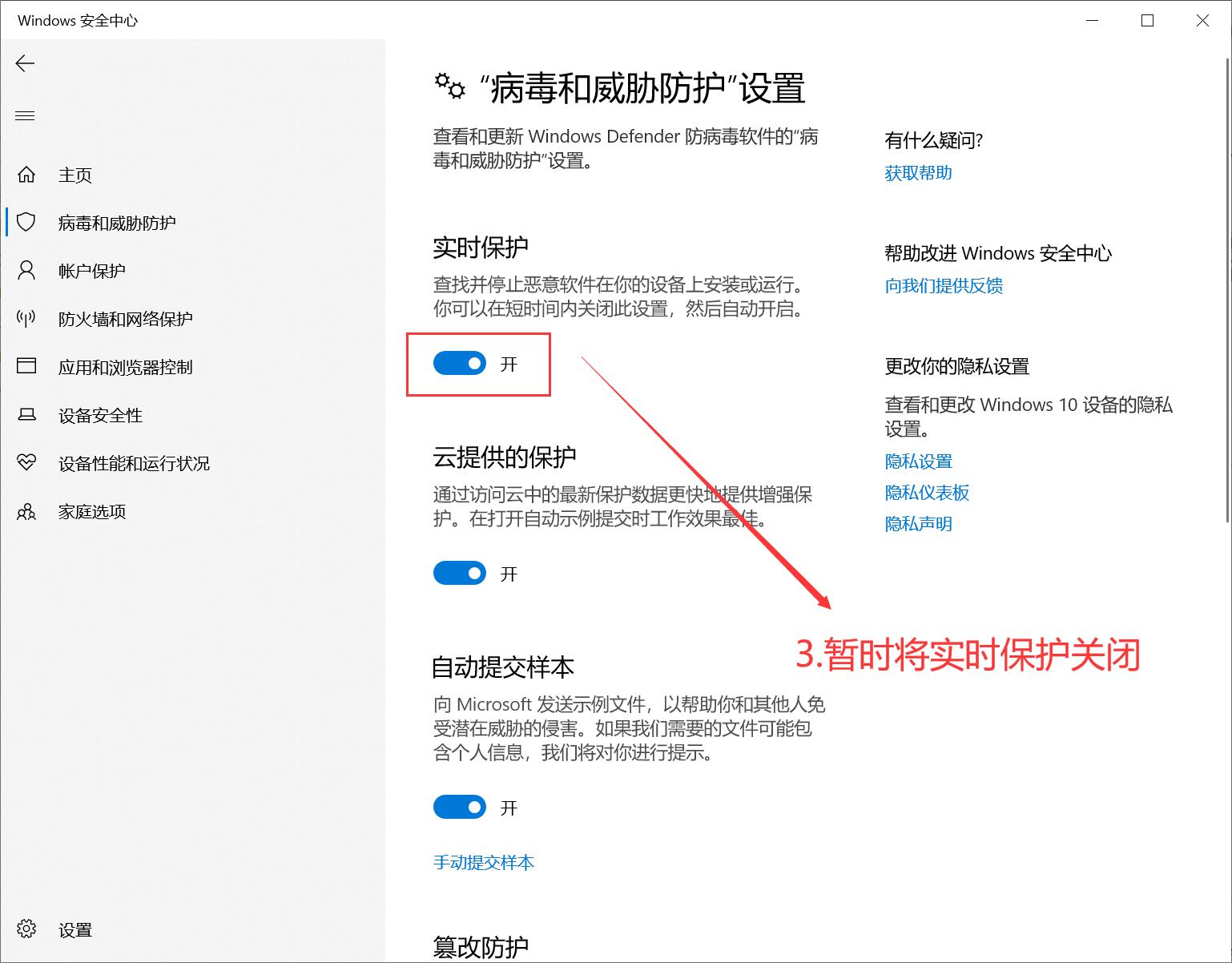 3.暂时将实时保护关闭
